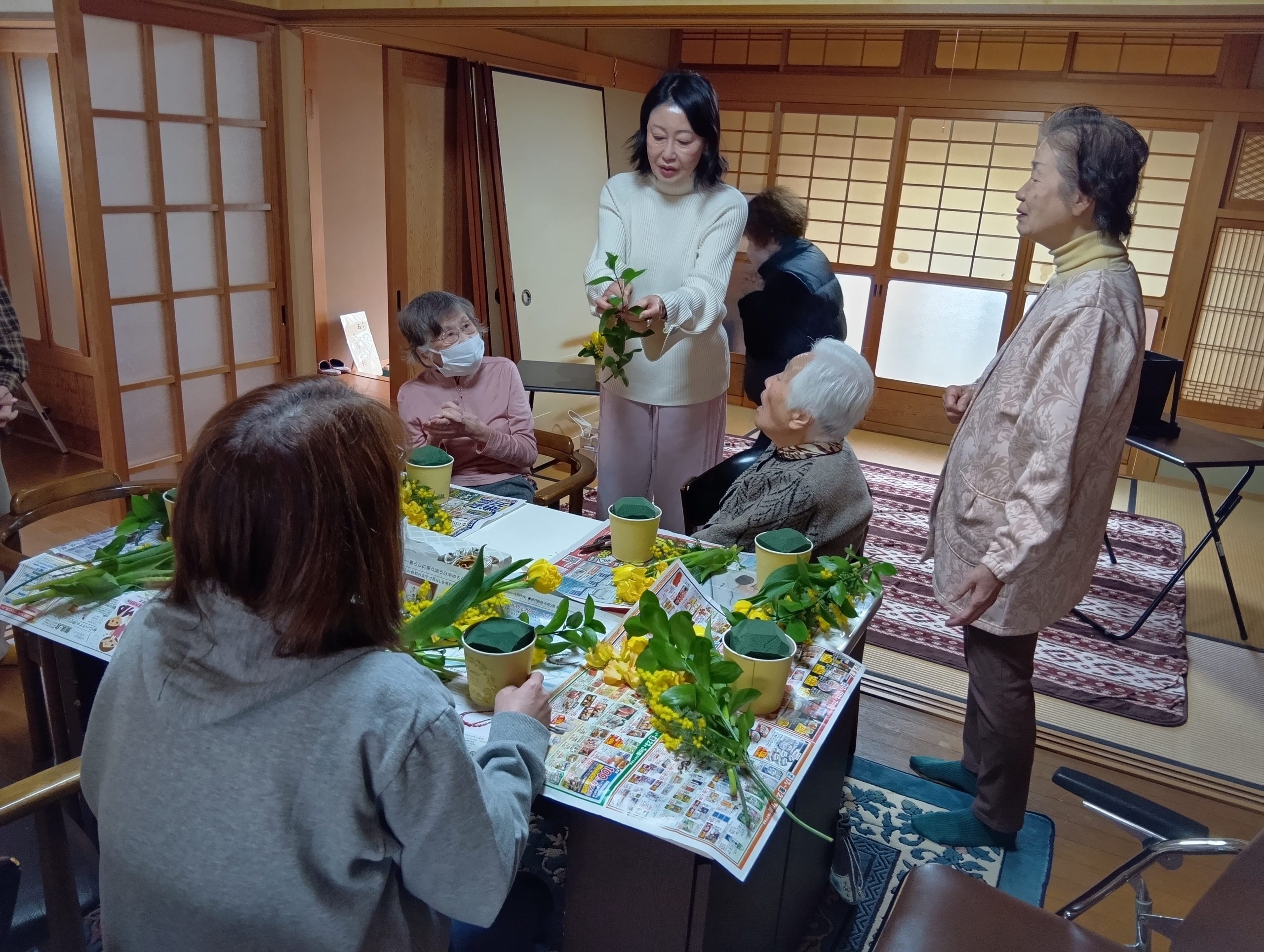 1月下旬、長田区の自治会館でフラワーアレンジメントのセミナーを開催しました。神戸市内でフラワーアレンジメント教室を実施する。寺花屋の谷口花織代表が講師を務めました。黄色い花々を使い、参加者からは「ここだけ春になったみたい」などの声が聞こえ、寒い冬を吹き飛ばすほど明るいセミナーとなりました。